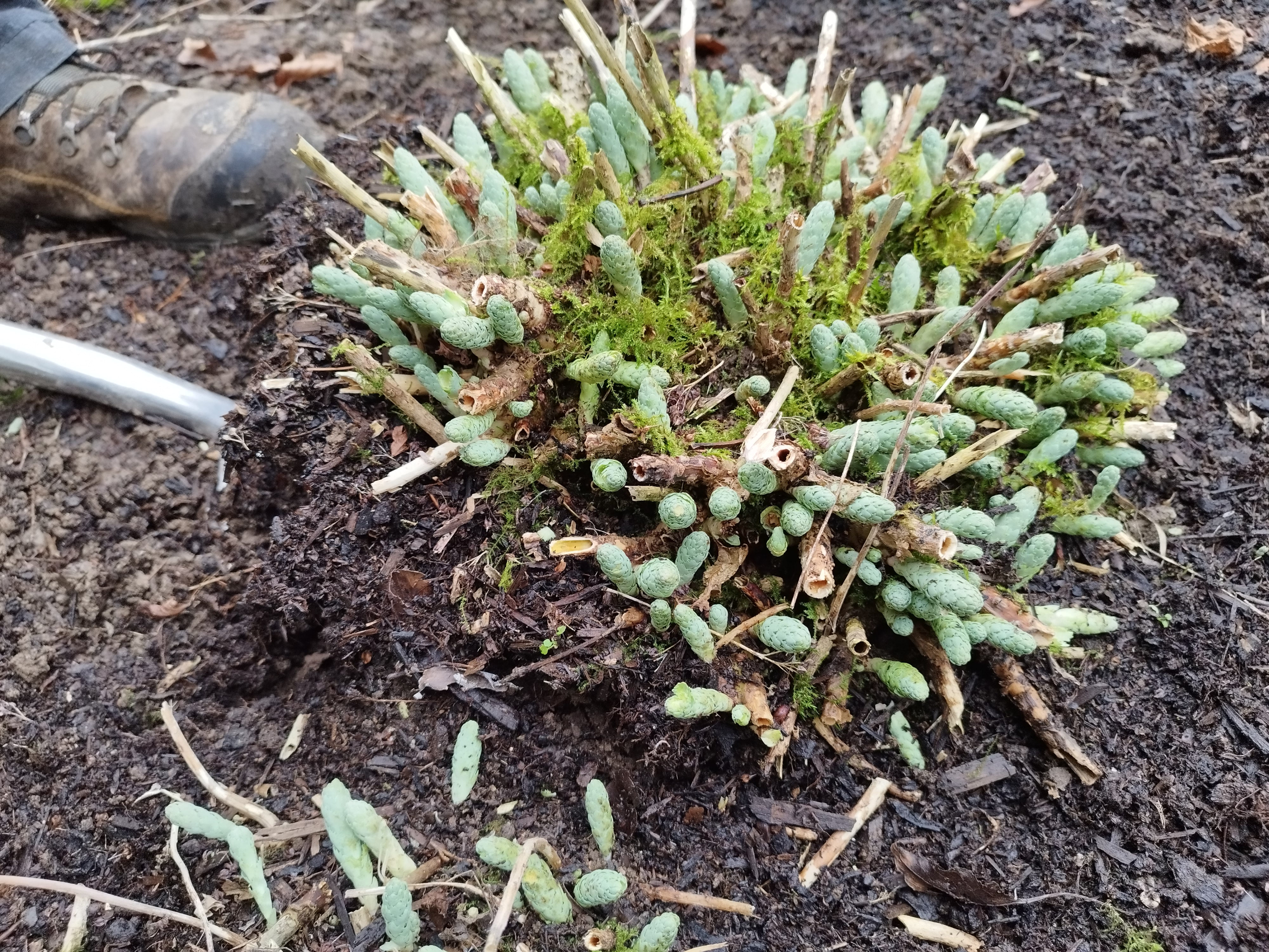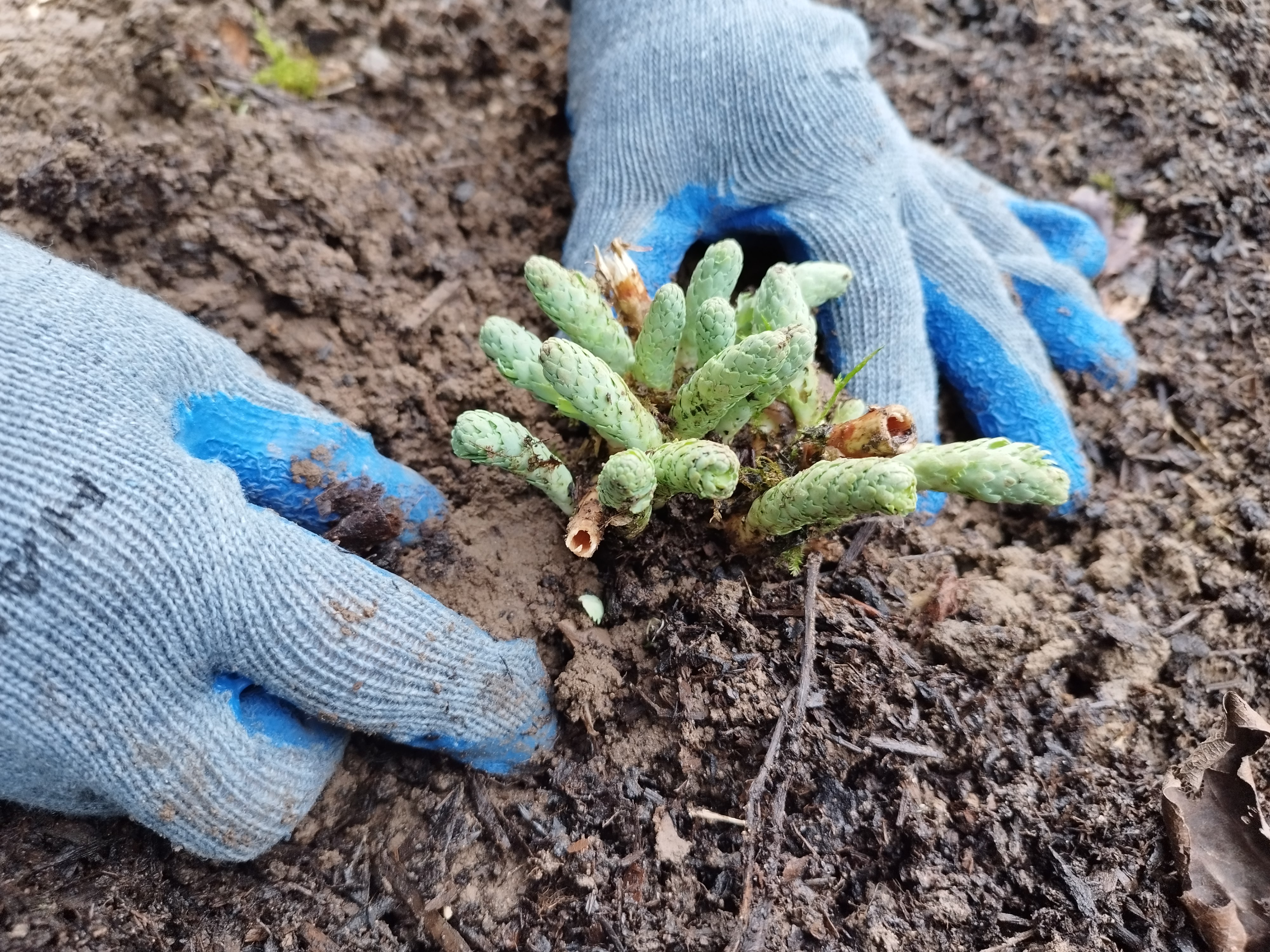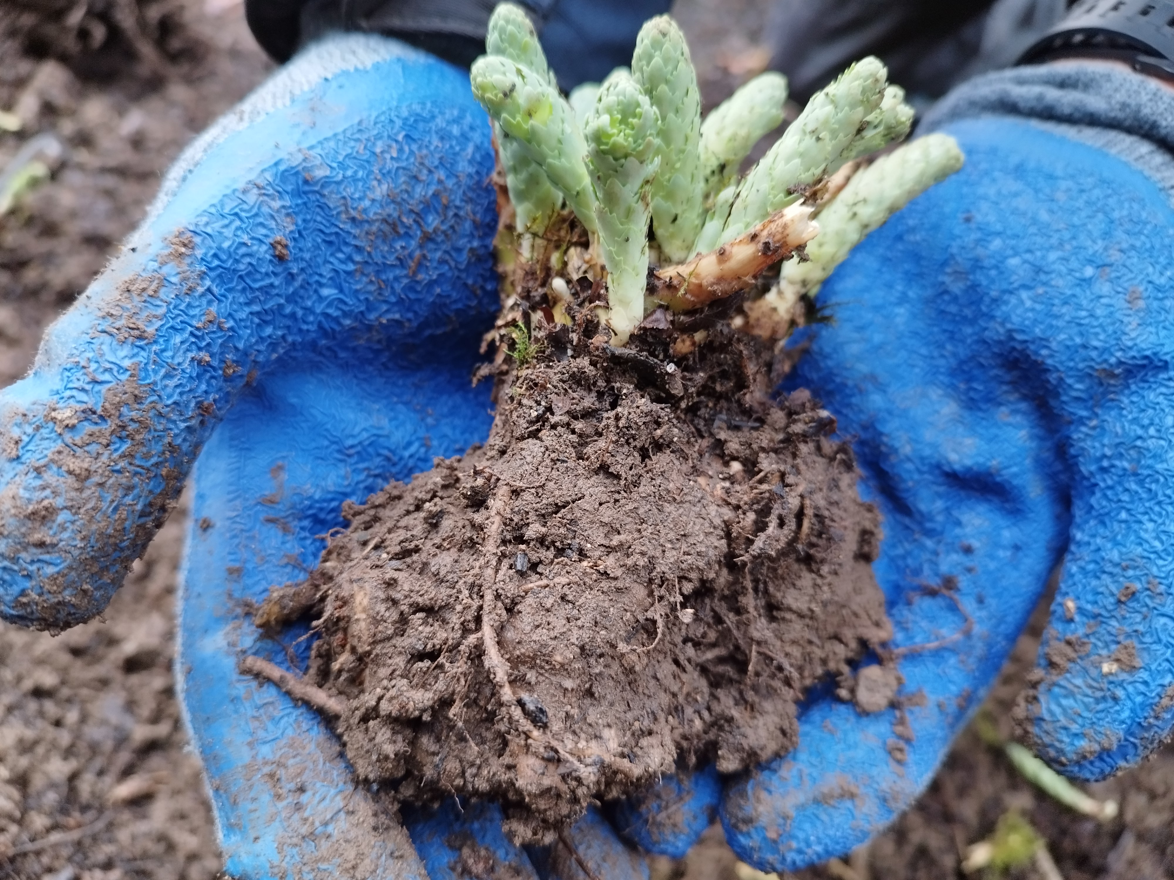 5. Select pieces to replant that have at least two to three strong growing points and a healthy and plentiful root system. Use pieces from the outside of the clump as these will be the youngest and most vigorous. Discard the old woody central portion and broken pieces.