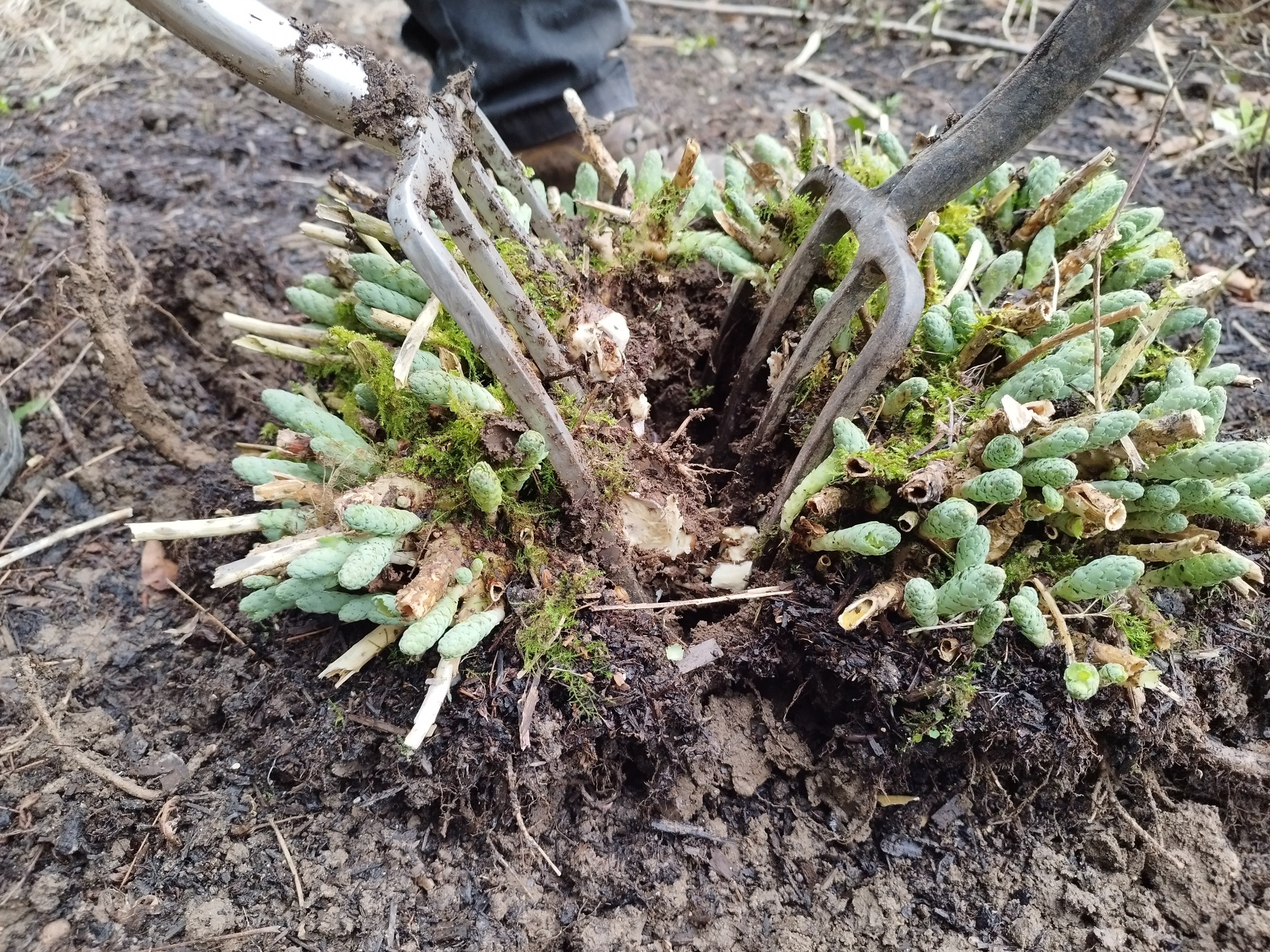 2. Use your spade or garden fork to lever and lift the plant out of the ground, shaking off loose soil.