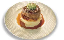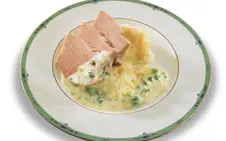 Meanwhile prepare the gratin potatoes. Put the potatoes, milk, cream, nutmeg, garlic, a little salt and black pepper in a large saucepan and bring to the boi.l Reduce the heat and simmer for 5 minutes, stirring regularly.