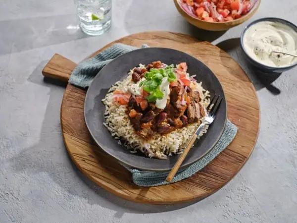 To serve: Brown rice and soured cream