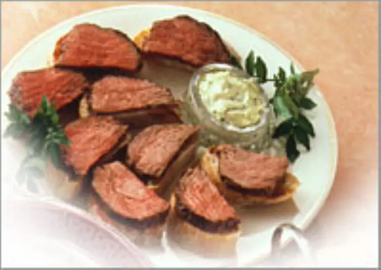 Roast the fillet, allowing 8 minutes per pound for rare and 10 minutes per pound for medium, or use a meat thermometer. Brush the fillet during cooking with the marinade.