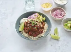 Serve with rice, some soured cream and extra chopped chillies, if you like it hot! The Red Pepper Salsa is also good with this dish.