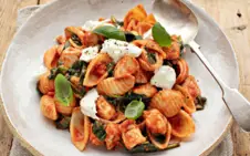 Preheat the grill to high. Drain the pasta and stir into the chicken and tomato sauce.