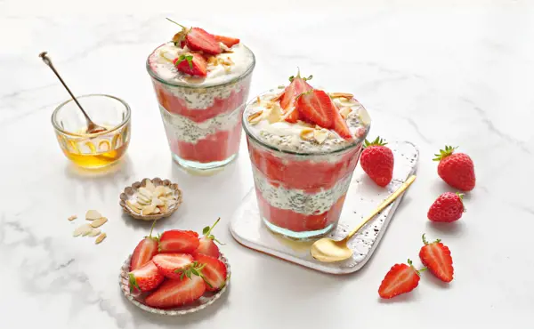 Copy TextThe perfect healthy breakfast with the addition of juicy strawberries to make it extra special. If you soak oats overnight, it completely changes their consistency so that they become lovely and soft.