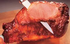 Spread with the mustard and brown sugar. Add approx.125ml of the reserved liquid to the roasting dish (keep the remaining liquid for soup).
