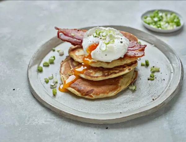 Savoury Pancakes with Smoked Bacon and Poached Eggs