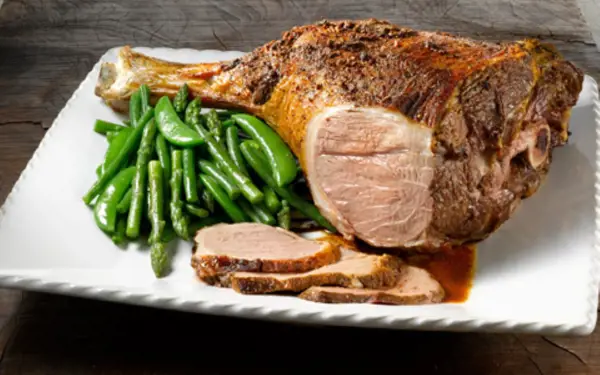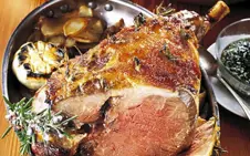 Boil up the juices in the roasting tin and stir in the redcurrant jelly. Serve with the sliced lamb.