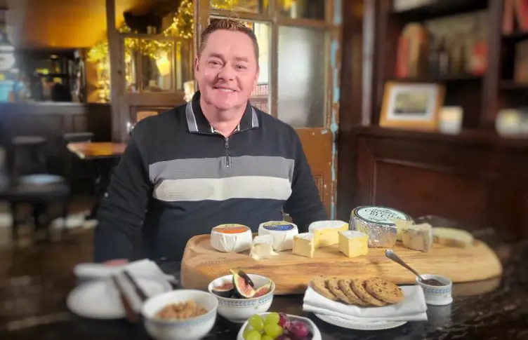 Assemble all cheeses and assorted sides on wooden board with small plates for serving.