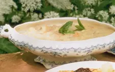 Lift the meat onto a board. Remove the meat from the bones and cut into small pieces. Discard the bones and return the meat to the broth.