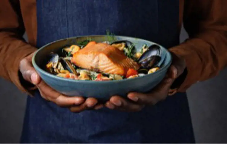 To serve: spoon the mussels and sauce into four shallow bowls and place a piece of same of top of each. Some crusty organic bread would be delicious with this dish.