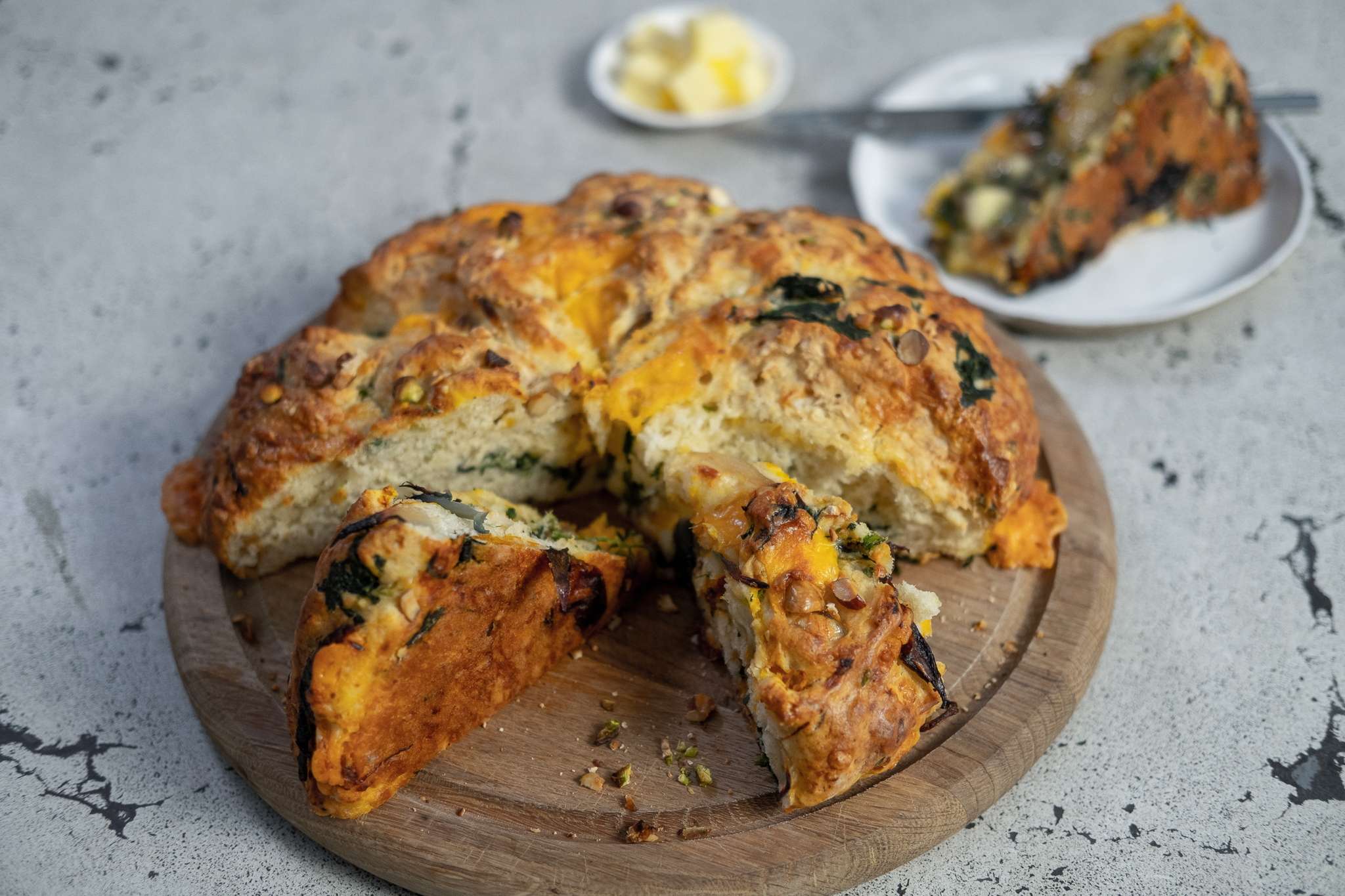 Heat a non–stick pan & add a touch of butter. Add 4 large spoonfuls of batter, spaced well apart and cook for 2 minutes until bubbles appear, flip and cook for another minute.