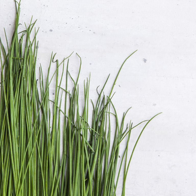 Chives were first used in China some 3,000 years ago. They belong to the same family as shallots, garlic and leeks and have a distinct onion taste. This fragrant herb has slender, vivid green, hollow stems. Chives are rich in Vitamin A and Vitamin C and are a good source of fibre and Vitamin E. However, because they are a herb being used mainly for flavour and garnishes, chives are not consumed in large enough quantities to make a major contribution to nutrient intakes.